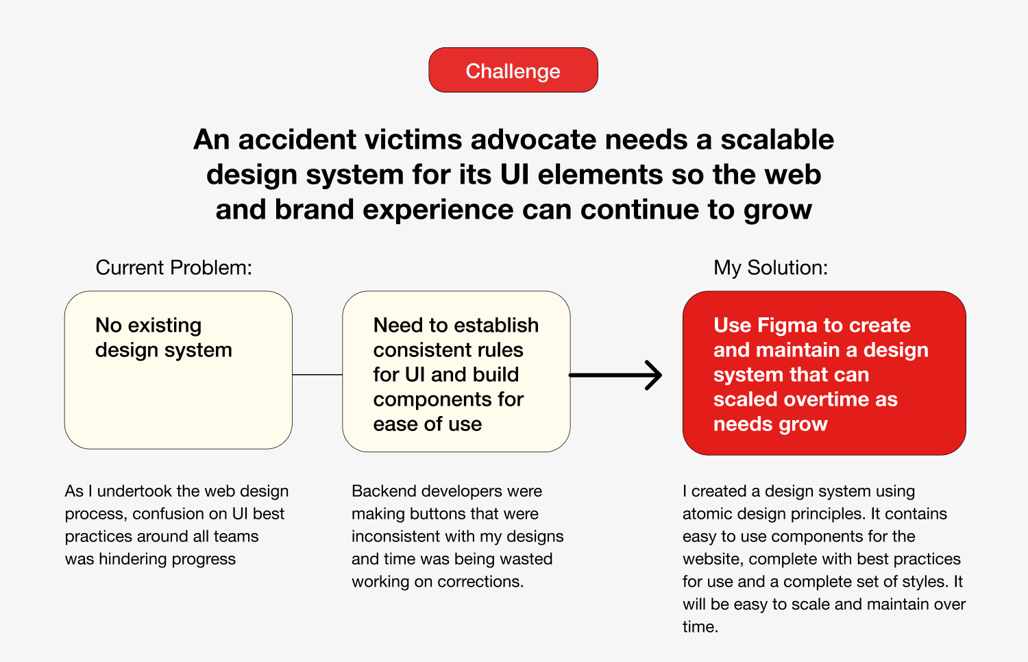 While the site was in development, there was too much back and forth between myself and developers on the backend team about the specs of buttons and fonts. We were all working on a tight deadline and too much time was being wasted, so I knew that it would be more effective to build a design system at this stage. I also knew that this business was going to last for a lot longer than just this initial launch, and I wanted to create a design system that could be easily scaled with the the components that would be implemented by other designers over time. With these factors, I found that the best thing for the project was to create a design system before the team went any further.